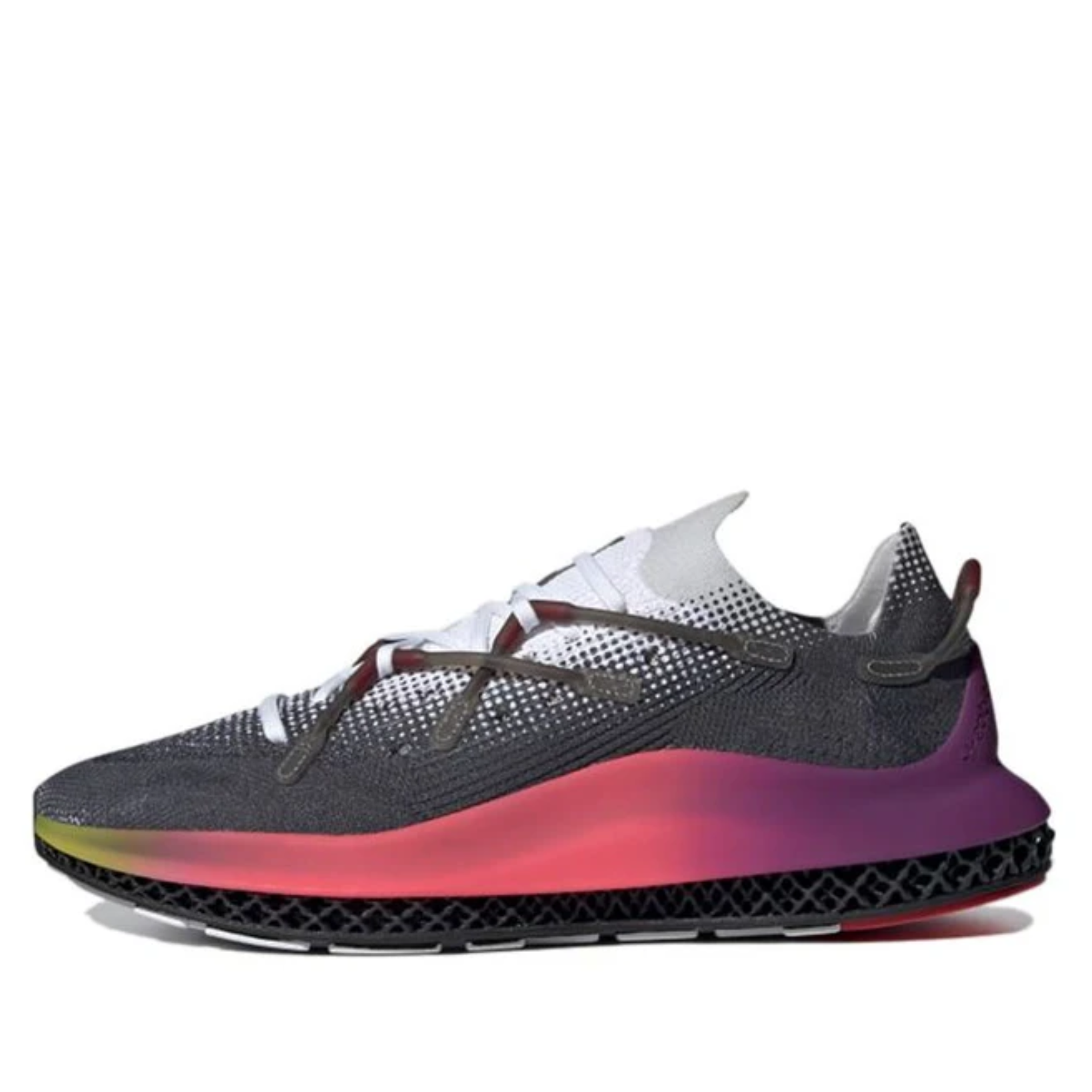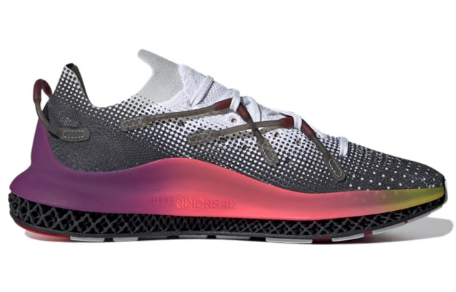 he adidas 4D Fusio ‘Black Ultra Purple’ treats the sneaker’s Primeknit textile upper with a color-fade effect that transitions from white to dark grey. A similar gradient design is applied to the TPU cage that wraps around the midsole, featuring a violet around the heel and a contrasting pop of yellow at the toe.