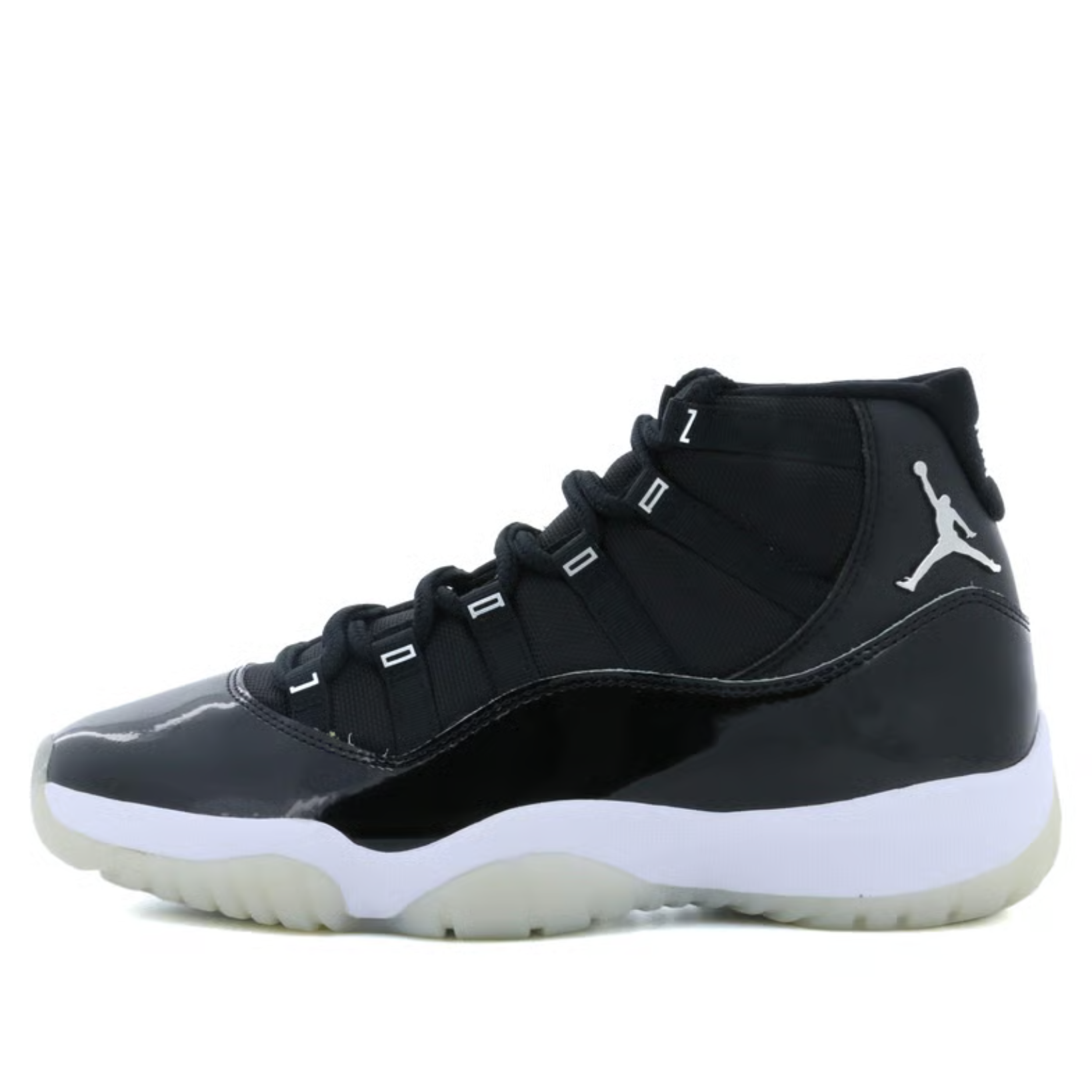 The Jordan 11 Jubilee showcases everything Hatfield envisioned for the sneaker 25 years ago; a performance product that can be worn easily both on and off the court. Features such as the two types of leather on the upper with hits of metallic lettering and Jumpman emblem add luxe elements to the athletic sneaker. A white midsole and foggy translucent outsole deliver contrast to the black sneaker. Carbon fiber plating on the sole provides stability and power to the wearer’s feet on the court.