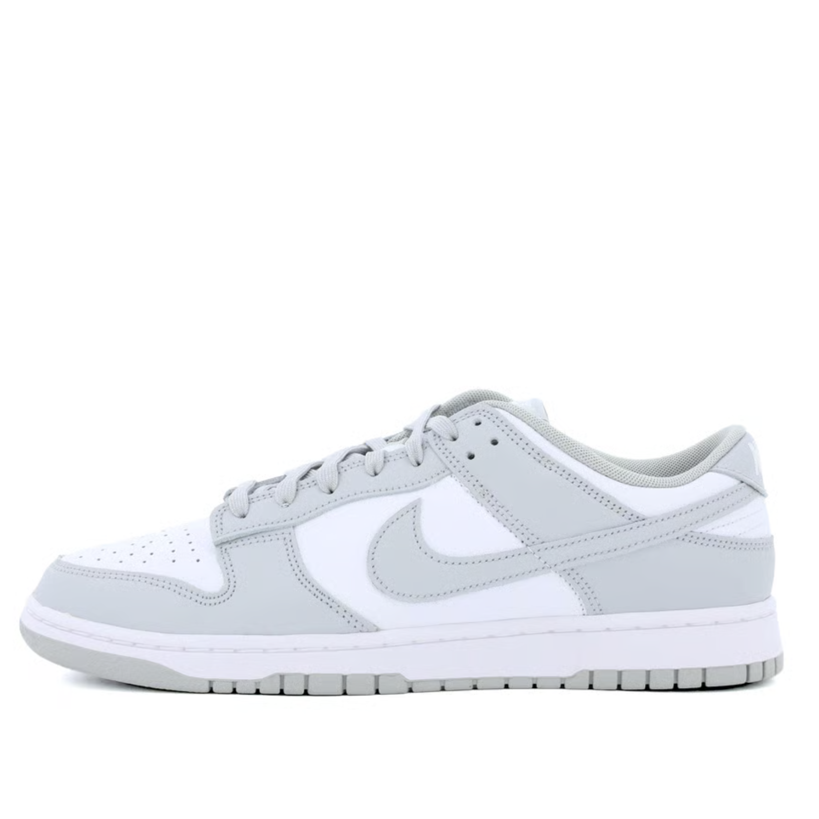 The Nike Dunk Low Grey Fog features a white leather upper with Grey Fog leather overlays and Swooshes. From there, a matching woven tongue label, heel tab, and sole completes the design.