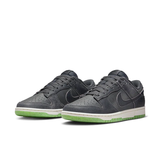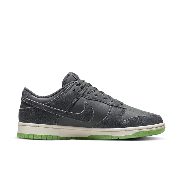The Nike Dunk Low Swoosh Shadow Iron Grey is made out of a mix of canvas, suede, and leather materials, coated in an iron grey, phantom and scream green color palette.