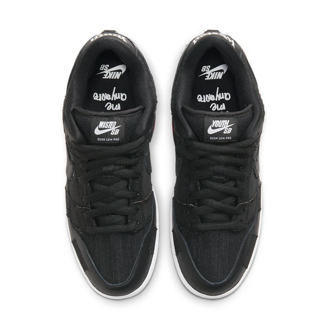The Nike SB Dunk Low Wasted Youth brings a more rugged and deconstructed look that’s different from Verdy’s first sneaker collab. Inspired by the relationship between punk and skate culture, the upper is composed of patchwork black denim and hits of black tumbled leather throughout. On each shoe’s medial side is Wasted Youth’s rose logo stitched alongside the Nike Swoosh to show true collaboration between the brands. The sneaker also features a DIY option on the lateral side’s Swoosh, where wearers can cut the black stitching to reveal a white-outlined Swoosh underneath. Lastly, “Wasted” and “Youth” embroidered on the heel tab is met with a D-Ring further touching on the design’s punk inspiration.